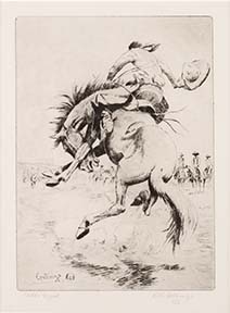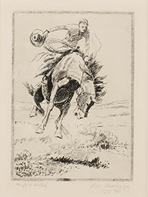 ![]() "Bulldogging" Medium: Etching Image Size: 10.75 inches high by 9 inches wide |