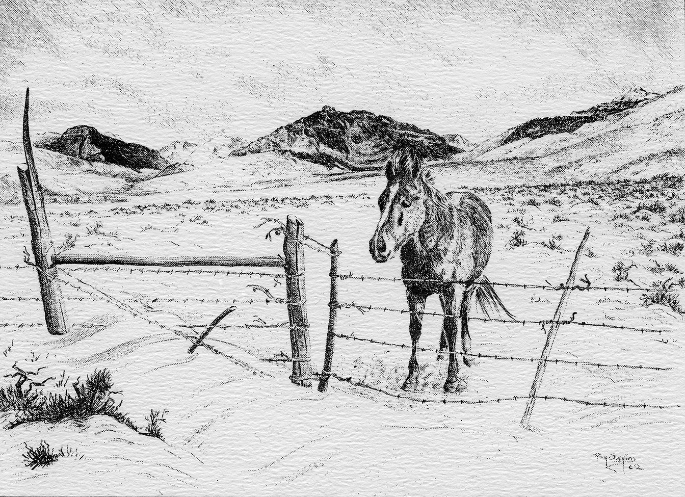 "Untitled-Horse at Winter Gate" Christmas Card Dated 1962 |