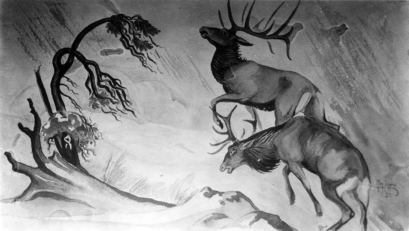 "Untitled-Two Bull Elk in Snowstorm" Dated 1937 |