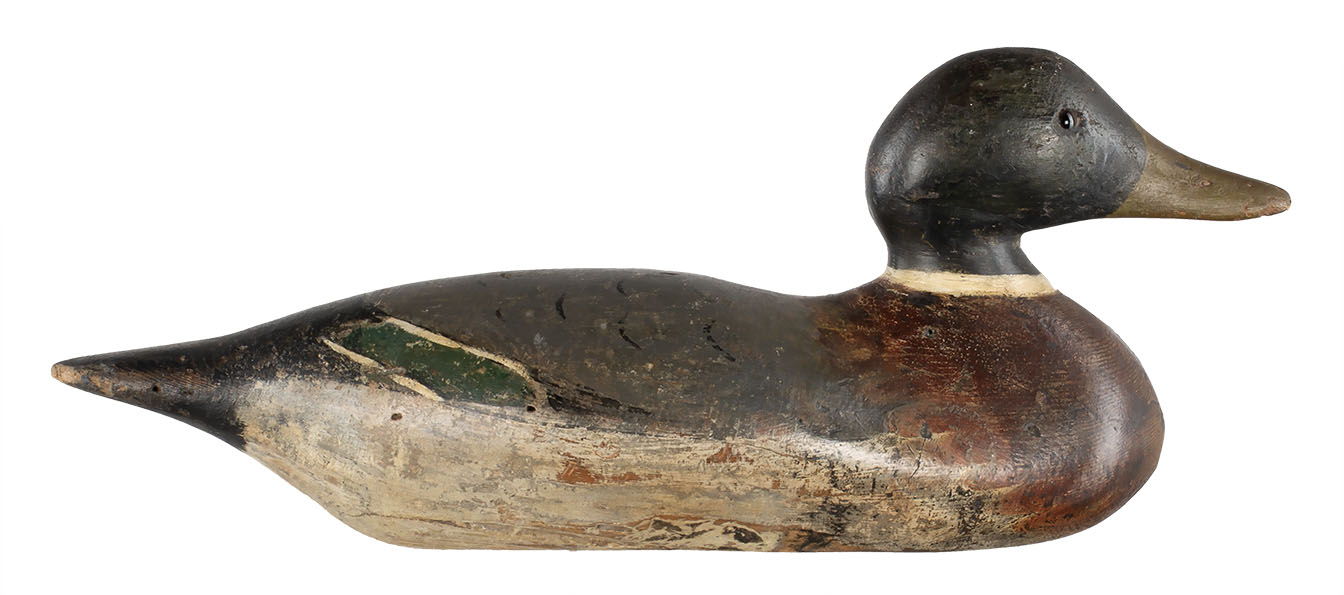 "Mason Decoy Mallard Drake Glass Eye" Eyes replaced, restored, black wing curved lines on back. |