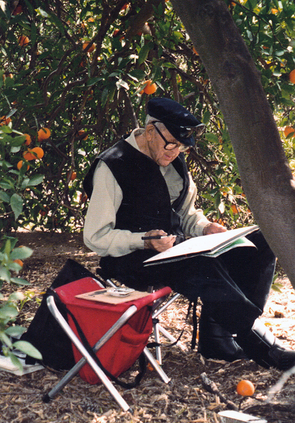 Milford Zornes was born in Oklahoma on January 25, 1908. He moved west to California during the Dust Bowl years. After turning twenty years old, he hitchhiked across the United States where he worked as a longshoreman on the docks in New York City and then traveled to Europe. Returning to Los Angles in the early 1930's, he studied at the Otis Art Institute. He joined the California Watercolor Society and became an artist of importance. The Corcoran Gallery of Art in Washington, D. C. had a one man show for him in 1933. President and Mrs. Franklin D. Roosevelt noticed his work and selected a painting for the White House. A predominant theme in his life was to travel. Zornes did murals during World War II for the Federal Arts Project of W.P.A.. He was a United States Army artist correspondent. During his career, he taught at Pomona College, Otis Art Institute, University of California at Santa Barbara, Riverside Art Canter, and the Pasadena School of Fine Arts. Milford Zornes passed away on February 24, 2008. Sources: Wesley P. Jessup, American Art Review, April 2003 Photograph courtesy of Maria Zornes Baker. |